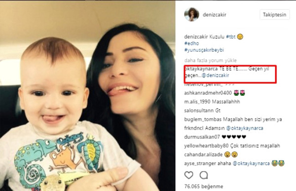 Altına da 'kuzulu tbt' notunu düştü. Bunun üzerine Oktay Kaynarca da 'TE BE TE diil… Geçen yıl geçen...' mesajını yazdı. Boş durmayan Deniz Çakır, ''Diil' diye bir kelime de yok Türkçe'mizde. Biraz itina' mesajını yazıp gülücük attı.