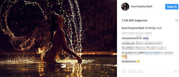Kourtney Kardashian, instagram hesabından geçtiğimiz günlerde de çırılçıplak bir fotoğrafını yayımlamıştı.