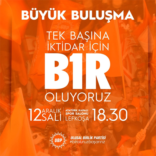 UBP’den verilen bilgiye göre, Atatürk Kapalı Spor Salonunda, “Tek Başına İktidar için Bir oluyoruz” sloganıyla yer alacak olan etkinlik, yarın saat 18.30’da başlayacak.