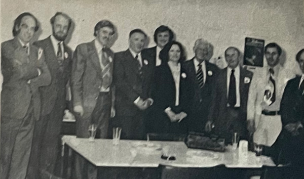 “Bir süre önce Commonwealth Banking Corporatle tarafından Melbourne (City Migrant Advisory Centre) atanan R.B.A Akdeniz, Bankası adına Melbourne iş sahipleri şerefine bir parti verdi. Hafif içkili olan bu partide bir araya gelen iş sahiplerimizle banka yetkilileri ve R.B. Akdeniz ayrı ayrı ilgilendiler. Az da olsa hanım iş sahiplerimiz de bu davete icabet ettiler. Yukarıdaki resimde iş sahiplerimiz, banka yetkilileri ve perdecilik sanayinde güvenilir bir isme sahip olan ilk Türk kadın fabrikatör Keriman Halis Hanım hep birlikte görülüyorlar” (Foto C.B).
