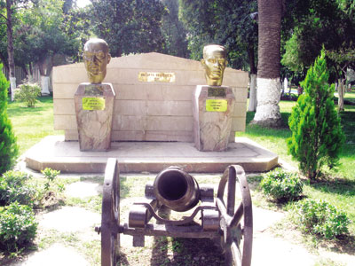 Hatayda Fransizlarla askeri anlaşma imzalayan Türk heyet başkanı Orgeneral Asım Gündüz ve 1938'de hatay'a giren Türk kuvvetleri Komutanı Kurmay Alnay Şükrü Kanatlı'nın Şehir parkındaki heykelleri