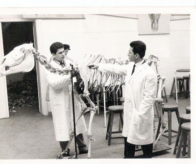 Derviş Çobanoğlu ( solda ), Anakara Üniversitesi Veteriner Fakültesi’nde, anatomi dersinde at iskeletini incelerken…Yanındaki öğrenci ise, Yunanlı bir sınıf arkadaşı idi.Uzun yıllar Mesarya ve bölgesinde veterinerlik yapan Derviş Çobanoğlu, üç dönem de UBP’den milletvekili seçilmiştir.