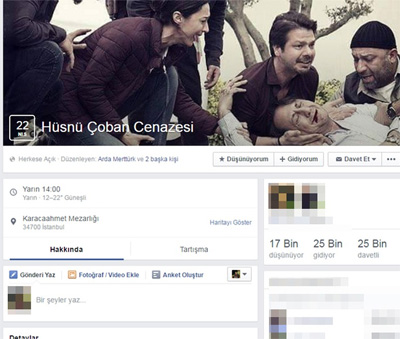 Hüsnü Çoban'ın öldüğünü düşünen hayranları Facebook'ta 'cenaze etkinliği' sayfası oluşturdu.
