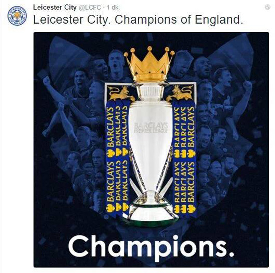 Leicester City’de diğer takımlara göre kısıtlı bir bütçe ile yola çıkan Leicester takımı, tarihi bir zafer elde etti. Leicester City, tarihinde ilk defa İngiltere Premier Lig şampiyonu oldu. Son iki haftaya girilirken yakın takipçisi Tottenham’ın 7 puan önünde olan Leicester City, 132 yıllık tarihinde ilk kez şampiyon oldu.
