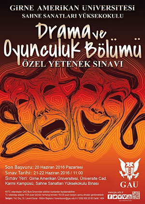 Girne Amerikan Üniversitesi (GAÜ) Sahne Sanatları Yüksekokulu, Drama ve Oyunculuk Bölümü Özel Yetenek Sınavı 21-22 Haziran tarihlerinde yapılacak.