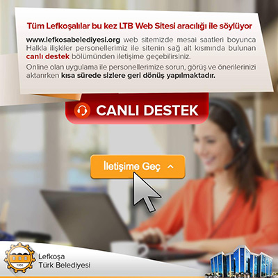 LTB tarafından yapılan açıklamaya göre, kısa bir süre önce yenilenen ara yüzü ve menü içerikleri ile kapsamlı bir web sitesini kullanıma sunan LTB’nin canlı destek uygulaması sayesinde Lefkoşalılar, mesai saatleri boyunca sitenin sağ alt kısmında bulunan canlı destek ikonuna tıklayıp LTB Halkla İlişkiler personeli ile anında karşılıklı yazılı iletişime geçebiliyor, sorun ve görüşlerini aktarırken, LTB personeli de sorun ve görüşlere ilişkin en kısa sürede yurttaşlarla geri dönüş yapıyor.