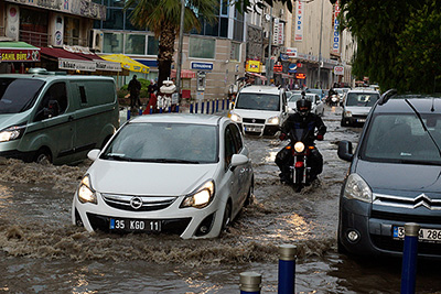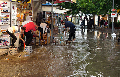 İzmir'in Tarihi Kemeraltı Çarşısı'nın girişindeki Anafartalar Caddesi'ndetıkanan rögarlar nedeniyle esnaf, iş yerlerini su basmaması için mücadele etti. İtfaiye ve İZSU ekiplerinden yardım isteyen esnaflar, ekipler gelmeyince, kendi imkanlarıyla yağmur suyunu engellemeye çalıştı. Esnaflar müşterilerinin suya batmadan ilerleyebilmesi için taburelerden köprü yaptı. Su dolu caddeden geçen vatandaşlar zor anlar yaşadı.