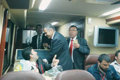 Öğlen saatlerinden, akşam geç saatlere kadar süren Talat’ın gezi programı, her zamanki gibi yemeksiz geçti. Talat’ın hızına yetişmek için koşturan kurmaylar, tüm gün ne kahve içebildi, ne de yemek yiyebildi…. TV, internet, buzdolabı, çift tuvalet, duş, özel görüşme odasının bulunduğu tam donanımlı otobüste, dönüş yolunda keşfedilen erzaklar kısa bir sürede tükendi….