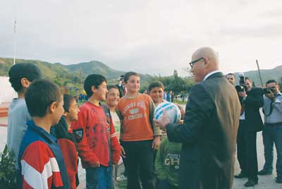 Ellerindeki topu Talat’a kaptıran çocuklar, toplarını alamamaktan korktu.