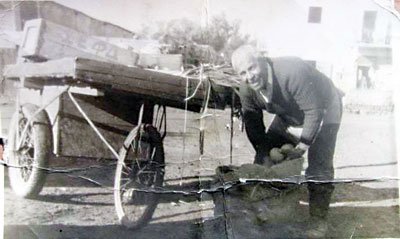 Fotoğrafta seyyar arabası ile görülen kişi, aslen Ayvasıllı olan Hasan Kadıoğlu’dur. 63 olayları çıkınca, 18 ay Dağyolu’nda kalan Hasan Amca, buradan Ortaköy’e gelir ve yaklaşık 18 ay boyunca Ortaköy’deki bir evde kirada oturur. Daha sonra ise, Göçmenköy’de yapılan göçmen evlerine yerleşir. 1965 – 66 yıllarında çekilen fotoğraftaki Hasan Kadıoğlu, Ortaköy ve Göçmenköy bölgesinde 25 yıl seyyar satıcılık yapar. Zamanın zor koşullarında, eşi Nadire Hanım ile birlikte, 10 çocuğunu da baş göz eden Hasan Kadıoğlu, 2007 yılında rahmetli olur. Kadıoğlu ailesinin çocuklarından Salih Kadıoğlu, Huriye Kadıoğlu, Hatice Kadıoğlu, Şifa Özdenya ve Özel Kadıoğlu Göçmenköy’de, Akile Savan Zümrütköy’de, Cemal Kadıoğlu Kermiya Öğretmen Evleri’nde, Emel Güler Turunçlu’da, Ayşe Arnavut Gönyeli’de ve Pembe Okman ise Hamitköy’de yaşıyor.