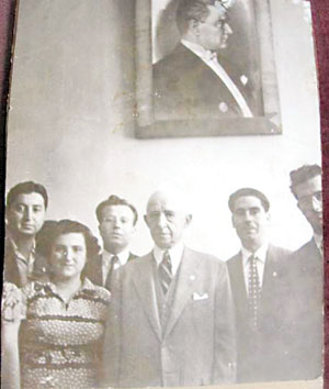 1953 yılında Ankara’da çekilen fotoğrafta, TC’nin 2. Cumhurbaşkanı İsmet İnönü ile birlikte Kıbrıslı Türkler görülüyor. 1938 – 1950 yılları arasında cumhurbaşkanlığını yürüten İnönü, fotoğrafın çekildiği tarihte cumhurbaşkanı değildi. O dönemde ana muhalefet partisi görevinde olan CHP ( Cumhuriyet Halk Partisi ) nin başkanı idi. İnönü’nün yanında duran soldaki bayan, Pembe Marmara, Urkiye Mine Balman ve Necla Salih Suphi ile birlikte, Türkiye’de de dikkat çeken dört kadın şairimizden biri olan Emine Hazım Remzi idi. Şiirlerinin çoğunu Engin Gönül takma adı ile yayınlayan Emine Hanım’ın, “ Sana Doğru ” adında, yayınlanmış bir de şiir kitabı bulunmaktadır. Aslen Nergislili ( Yenağra ) olan Emine Hanım, Viktorya Kız Lisesi’ni bitirdikten sonra, birkaç yıl Enformasyon Dairesi’nde çalıştı. Ayrıca Ayasofya İlkokulu’nda da, 11 yıl öğretmenlik yaptı. (Ayasofya İlkokulu, şimdi Kıbrıs Türk Belediyeler Birliği binası olarak kullanılmaktadır)1953 yılında eşi Hazım Remzi ile ticaret hayatına atılan Emine Hanım, 1999 yılında rahmetli oldu. İsmet İnönü’nün solundaki kişi de, Emine Hanım’ın eşi Hazım Remzi idi. Hazım Bey, ticaret hayatına atılıncaya kadar, Barcklays Bank’ta çalıştı. Ticaret hayatına atılıncaya, Türkiye gazetelerinin genel bayiliğini aldı. Ayrıca Adler marka Alman malı yazı ( daktilo ) makinelerinin de Kıbrıs’taki tek acentesiydi. Ticarete ilk atıldığı dönemdeki dükkanı, eski Kıbrıs Cumhuriyeti Başkanı Papadopulos’un hukuk bürosunun yanında idi. Daha sonraki yıllarda ise, Saray Otel’in altındaki Hürriyet Ticaret Evi adını verdiği dükkanında, yıllarca gazete bayiliğine, kitap kırtasiye, konfeksiyon ve hesap makineleri acenteliğine devam etti. 1960’dan 1970’e kadar Kıbrıs Türk Cemaat Meclisi üyeliği de yapan Hazım Bey de, 1999 yılında rahmetli oldu. Fotoğraftaki diğer kişiler hakkında ise bilgi edinilememiştir.