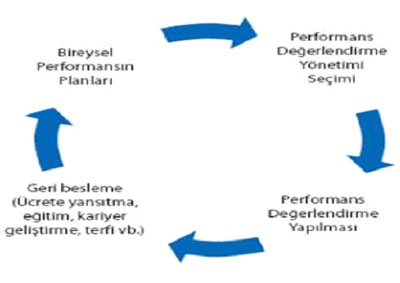 • Performans Yönetimi: Kurumlarda liyakata dayalı bir sistemin işlerlik kazanması için performans yönetimi, sistemin olmazsa olmazıdır. Kurumda belirlenen hedeflere ne ölçüde varıldığının ölçülmesi ve kurumsal etkinlik ve verimliliğin artırılması için ücretlendirme, terfi, eğitim ve kariyer geliştirme gibi önlemlerin alınmasına performans yönetimi denmektedir. Bu yapı ile ilgili sistem aşağıdaki şekille açıklanabilir.